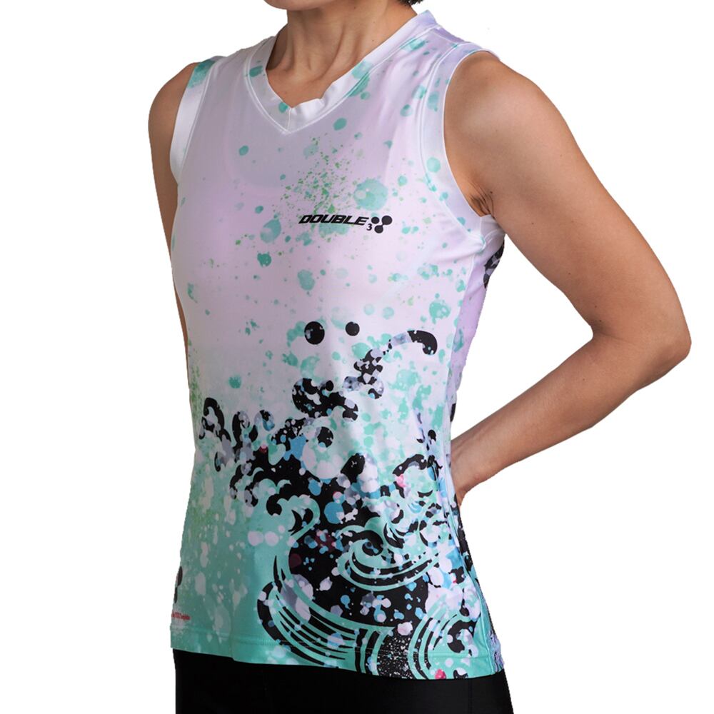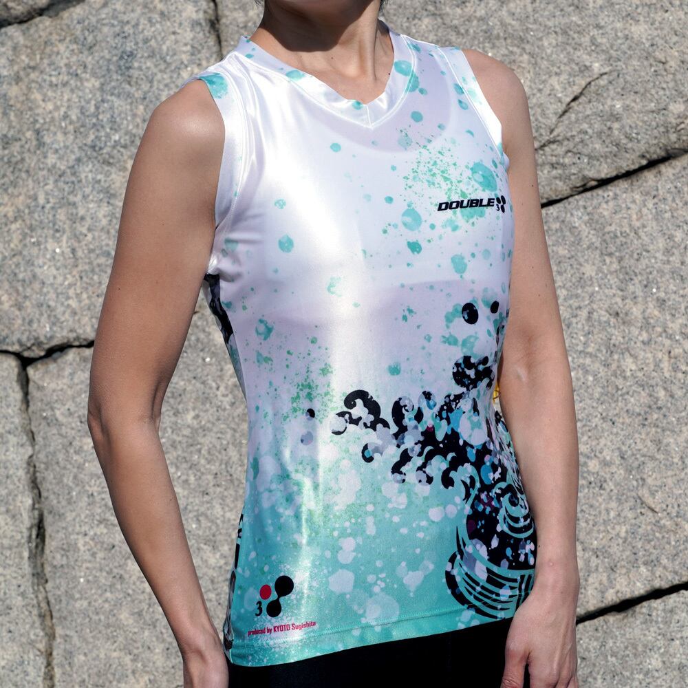 DOUBLE3×京都 印染工房 スギシタ WOMEN 鯉 DW5313KI 日本製 ランニングノースリーブシャツ エキップモデル